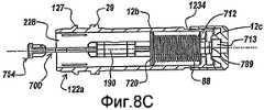 Привод может включать первый смещающий механизм, второй смещающий механизм, привод шприца плунжерного типа и/или другое средство привода.The drive may include a first biasing mechanism, a second biasing mechanism, a plunger-type syringe drive and / or other drive means.