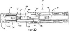 В одном варианте осуществления, шприц, кроме того, включает плунжер сначала для селективного перемещения шприца по направлению к открытому первому концу корпуса автоматического инъекционного устройства, так что игла выступает из первого конца, а в последующем, подачи давления на пробку для того, чтобы вызвать выталкивание шприцем вещества через полую иглу.In one embodiment, the syringe further includes a plunger first to selectively move the syringe toward the open first end of the casing of the automatic injection device, so that the needle protrudes from the first end, and subsequently pressurizes the cork in order to eject syringe through a hollow needle.