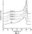 На ФИГ.2 представлены результаты дифференциальной сканирующей калориметрии для различных вариантов описываемого здесь сополимера, получаемого с использованием металлоцена согласно данному изобретению, по сравнению с получаемыми сополимерами с использованием металлоцена, имеющими такую же плотность и индекс расплава.Figure 2 presents the results of differential scanning calorimetry for various variants of the copolymer described here, obtained using the metallocene according to this invention, in comparison with the obtained copolymers using metallocene having the same density and melt index.