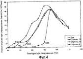 На ФИГ.3 представлены результаты дифференциальной сканирующей калориметрии для различных вариантов описываемого здесь сополимера, получаемого с использованием металлоцена согласно данному изобретению, по сравнению с сополимерами, получаемыми с использованием металлоцена, имеющими такую же плотность и индекс расплава.Figure 3 presents the results of differential scanning calorimetry for various variants of the copolymer described here, obtained using the metallocene according to this invention, compared with copolymers obtained using metallocene having the same density and melt index.