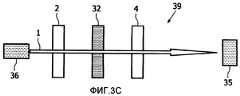 В стадиях, предшествующих стадии из Фиг.3А, приготовили образец жидкости с целевыми биомолекулами, конъюгированными с флуорофорами. На стадии 37 на Фиг.3А образец 6 контактирует с субстратом 30 путем протекания образца жидкости через субстрат, обеспечивая присоединение целевых биомолекул, имеющих флуорофоры, к специфическим местам связывания на субстрате. Должно быть понятно, что целевые молекулы могут контактировать с субстратом альтернативными путями, например, путем нанесения капель из импульсного распылителя или другим пригодным способом.In the steps preceding the step of FIG. 3A, a fluid sample was prepared with target biomolecules conjugated to fluorophores. In