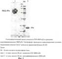 В масс-спектре коньюгата ПЭГ-ИФН-α2, приведенном на фиг.4 В, представлен размытый основной пик, соответствующий однозарядному иону [М]+ с молекулярной массой 40498 Да. Размытость пика связана с гетерогенностью препаратов монометоксиПЭГ. Для коньюгата ПЭГ-ИФН измеренное значение m/z в максимуме пика (40498 Да) совпадает с расчетными данными по сумме молекулярных масс ИФН-α2 (19295 Да) и присоединенного ПЭГ (20000 Да).The PEG-IFN-α2 conjugate mass spectrum shown in FIG. 4B shows the diffuse main peak corresponding to the singly charged [M]+ ion with a molecular weight of 40498 Da. Peak blur is associated with the heterogeneity of monomethoxyPEG preparations. For the PEG-IFN conjugate, the measured m / z value at the peak maximum (40498 Da) coincides with the calculated data on the sum of the molecular weights of IFN-α2 (19295 Da) and the attached PEG (20,000 Da).