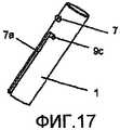 На Фиг.17 показана первая часть 1 для введения в положении после использования, где первая часть 1 для введения, включающая в себя использованную вводную иглу 6 (не показана), освобождена от второй части 2 для введения для утилизации. Удерживающая иглу часть 9 (не показана) заблокирована в первой части 1 для введения посредством ответвления 9с в по существу L-образной щели 7а, тем самым удерживая использованную вводную иглу 6 (не показана) внутри первой части 1 для введения по соображениям безопасности при утилизации.On Fig shows the