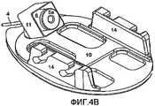 На Фиг.4А показано то же одноразовое устройство для введения, что и на Фиг.1 и 2, расположенное под некоторым углом, где устройство 1, 2 для введения готово к срабатыванию, т.е. в том же положении, что и на Фиг.1. Гибкая подложка 10 снабжена средством 14 крепления для закрепления устройства доставки (не показано), которое может содержать, например, емкость для лекарственного средства вместе со средством транспортировки в виде помпы и т.п.Fig. 4A shows the same disposable insertion device as in Figs. 1 and 2, located at a certain angle, where the
