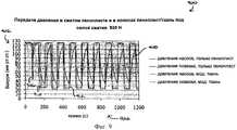 Как можно видеть на Фиг.9, пониженное давление периодически изменяется, увеличиваясь и уменьшаясь приблизительно между 0 мм ртутного столба и 125 мм ртутного столба. Линии 906 и 910 достаточно близко соответствуют друг другу, показывая, что имеется небольшое различие измеряемого пониженного давления во время тестов на стороне насоса повязки/воздухопроницаемой интерфейсной системе 100 во время периодического изменения пониженного давления. На другой стороне повязки, линия 908 показывает запаздывание во времени для достижения приложенного пониженного давления в традиционной повязке. Этот вывод следует из того, что форма линии 908 представляет собой дугу, показывая постепенное нарастание пониженного давления, прежде чем оно достигнет полного пониженного давления. Наоборот, линия 912 изображает резкие переходы, когда пониженное давление периодически повторяется, увеличиваясь и уменьшаясь, показывая, тем самым, что воздухопроницаемая интерфейсная система 100 обеспечивает улучшенный перенос текучей среды и отклик на пониженное давление, чем традиционная повязка.As can be seen in FIG. 9, the reduced pressure periodically changes, increasing and decreasing between approximately 0 mm Hg and 125 mm Hg.