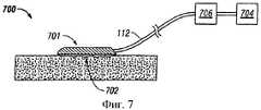 Фиг.7 представляет собой схематическую диаграмму системы лечения ткани пониженным давлением, имеющей воздухопроницаемую интерфейсную систему, выполненную в соответствии с иллюстративным вариантом выполнения изобретения;7 is a schematic diagram of a reduced pressure tissue treatment system having a breathable interface system in accordance with an illustrative embodiment of the invention;