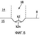 В частных вариантах осуществления модифицированное значение второй главной кривизны k2n может быть доведено до значения меньше нуля, например, когда выбухание, которое подлежит деформации, расположено в вогнутой складке 18 стенки 8 кишечника. Этот вариант показан на фиг.5.In particular embodiments, the modified value of the second principal curvature k2n can be brought to a value less than zero, for example, when the bulging to be deformed is located in the