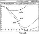 [0065] ФИГ. 26 показывает графики термического гравиметрического анализа (ТГА), иллюстрирующие потерю массы для покрытых полиэтиленом (а), полибутадиеном (b) и полиизопреном (c) частиц кремнезема, под атмосферой воздуха, при температурах, находящихся в диапазоне от примерно 100°C до примерно 600°C; потеря массы по существу соответствует количеству полимерного покрытия, добавленного во время процесса нанесения покрытия; наблюдаемое увеличение веса при более высоких температурах соответствует нарастанию оксидного слоя.FIG. 26 shows graphs of thermal gravimetric analysis (TGA) illustrating mass loss for silica particles coated with polyethylene (a), polybutadiene (b) and polyisoprene (c), under air, at temperatures ranging from about 100 ° C to about 600 ° C; the weight loss essentially corresponds to the amount of polymer coating added during the coating process; the observed weight gain at higher temperatures corresponds to an increase in the oxide layer.