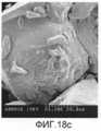 [0057] ФИГ. 18 (а-c) показывает микрофотографии в сканирующем электронном микроскопе (СЭМ) магнитных металлических макрочастиц.FIG. 18 (a-c) shows microphotographs in a scanning electron microscope (SEM) of magnetic metal particles.