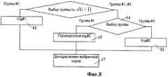 Распределение вероятностей в группах показано на Фиг 5. Легко видеть, что распределения для групп #1 и #3 похожи, но инвертированы по оси x. Это означает, что всего один код может быть использован для обеих групп без каких бы то ни было существенных потерь в эффективности кодирования. Для этого индекс кодового слова должен отсчитываться в обратном порядке для группы #3.The probability distribution in the groups is shown in Fig. 5. It is easy to see that the distributions for