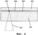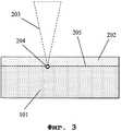 Как видно из схемы на Фиг.3, лазерный луч 203 проходит сквозь гомоэпитаксиальную пленку 202 и фокусируется в пятно диаметром 1 мм, что обеспечивает плотность энергии 50 Дж/см2.As can be seen from the diagram in Figure 3, the