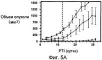 На ФИГ.5А представлена активность соединения примера 11 при 1 мкмоль/кг TIW (6 доз) (●) и 2 мкмоль/кг TIW (6 доз) (▼) в отношении FR-положительных опухолей М109 у мышей Balb/c относительно контролей без введения (■).FIG. 5A shows the activity of the compound of Example 11 at 1 μmol / kg TIW (6 doses) (●) and 2 μmol / kg TIW (6 doses) (▼) against FR-positive M109 tumors in Balb / c mice relative to controls without introduction (■).