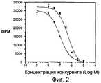 На ФИГ.2 представлена относительная аффинность связывания соединения примера 11 (■, 0,21) относительно фолиевой кислоты (●, 1,0) с рецепторами фолиевой кислоты.FIG. 2 shows the relative binding affinity of the compound of Example 11 (■, 0.21) for folic acid (●, 1.0) with folic acid receptors.