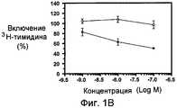На ФИГ.1В представлена активность соединения примера 9 в отношении включения3H-тимидина в клетки KB при избытке фолиевой кислоты (о) и без него (●); IC50 соединения примера 2 составляет приблизительно 58 нМ.FIG. 1B shows the activity of the compound of Example 9 with respect to the incorporation of3 H-thymidine into KB cells with an excess of folic acid (o) and without it (●); The IC50 of the compound of Example 2 is approximately 58 nM.