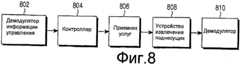 Данные услуг или внутриполосные сигналы принимаются посредством не показанного приемника, и эти принимаемые данные услуг или внутриполосные сигналы демодулируются посредством демодулятора 802 информации управления. Совокупность информации управления, необходимая для демодуляции услуг, включая информацию о числе услуг, заключенных в первой или второй зоне (т.е. одной из двух зон), и число субдолей на услугу для каждой зоны, полученную посредством демодулятора 802 информации управления, вводится в контроллер 804.Service data or in-band signals are received by a receiver not shown, and these received service data or in-band signals are demodulated by a