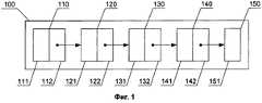 На Фиг.1 показана структурная схема варианта реализации связного списка. Связный список 100 состоит из элементов списка 110, 120, 130, 140 и 150. Каждый элемент связного списка содержит собственные данные и ссылку на следующий элемент списка. Так, элемент 110 содержит блок собственных данных 111 и ссылку 112 на следующий элемент списка 120. Элемент 120 содержит блок собственных данных 121 и ссылку 122 на следующий элемент списка 130. Элемент 130 содержит блок собственных данных 131 и ссылку 132 на следующий элемент списка 140. Элемент 140 содержит блок собственных данных 141 и ссылку 142 на следующий элемент списка 150. Последний элемент списка 150 содержит только блок собственных данных 151.Figure 1 shows a structural diagram of a variant of implementation of a linked list. The linked