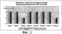 Фиг.1. является диаграммой, на которой сравнивается гипертермическая эффективность функционализированной частицы и соответствующей окончательной магнитной системой, в которой указанная эффективность выражена как ΔT в °С.Figure 1. is a diagram comparing the hyperthermic efficiency of a functionalized particle and the corresponding final magnetic system in which the indicated efficiency is expressed as ΔT in ° C.