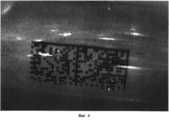 На прозрачном и бликующем изделии, таком как ампула, предварительно нанесена штриховая метка с помощью струйного принтера. Данная метка не обеспечивает декодирование двумерного штрихового кода сканером isReader C-1, так как отсутствует ее четкое и качественное отражение (см. фиг.3).A transparent and glare product, such as an ampoule, is pre-marked with a bar mark using an inkjet printer. This label does not provide decoding of a two-dimensional bar code with the isReader C-1 scanner, since there is no clear and high-quality reflection of it (see Fig. 3).