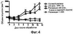 Фигура 4 является графиком, показывающим противоопухолевую активность Abraxane™, Nab-рапамицина и Nab-рапамицина в комбинации с Abraxane™ у мышей с ксенотрансплантатами HT29 опухоли ободочной кишки.Figure 4 is a graph showing the antitumor activity of Abraxane ™, Nab-rapamycin and Nab-rapamycin in combination with Abraxane ™ in colonic tumor HT29 xenograft mice.
