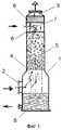 Брызгоуловитель 9 выполнен в виде концентрично расположенных цилиндрических колец толщиной 1..2 мм, и с расстоянием между ними 3…4 мм. Брызгоуловитель выполнен в виде концентрично расположенных колец, имеющих в сечении, проходящем через ось кольца, зигзагообразный профиль, например синусоидальный, причем толщина колец 1…2 мм, а расстояние между ними 3…4 мм. Брызгоуловитель выполнен в виде концентрично расположенных колец, имеющих в сечении, проходящем через ось кольца, профиль, состоящий из последовательно соединенных кругов, причем толщина колец по максимальной толщине 3…4 мм, а расстояние между ними 4…5 мм (на чертеже не показано).The spray catcher 9 is made in the form of concentric cylindrical rings with a thickness of 1..2 mm, and with a distance between them of 3 ... 4 mm. The spray catcher is made in the form of concentrically arranged rings having, in cross section passing through the axis of the ring, a zigzag profile, for example a sinusoidal one, moreover, the thickness of the rings is 1 ... 2 mm and the distance between them is 3 ... 4 mm. The spray catcher is made in the form of concentric rings arranged in a section passing through the axis of the ring, a profile consisting of series-connected circles, and the thickness of the rings over the maximum thickness is 3 ... 4 mm, and the distance between them is 4 ... 5 mm (not shown in the drawing) .