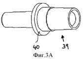 На фиг.3А и 3В показаны виды в перспективе трубчатого переходника 39, предназначенного для удерживания силиконовой трубки и ее вставления в удерживающие средства 3, предусмотренные в кассете 1 захватного зажима в сборе (см. фиг.1). Для обеспечения надлежащего крепления трубчатые переходники содержат фланец 40, который предназначен для контакта с выемками, образованными в удерживающих средствах 3 кассеты 1.FIGS. 3A and 3B show perspective views of a