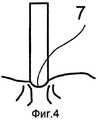 Сапфировым хладопроводом с выпуклой площадкой контакта 7 (Фиг.4), которая действует как положительная линза и фокусирует излучение на некоторой глубине в ткани, касаются поверхности возможной патологической ткани и подают диагностическое излучение. При наличии патологии, накопленные в ткани экзогенные или естественные «маркеры» флуоресцируют, и сигнал флуоресценции захватывается волокнами, используемыми для захвата излучения флуоресценции в каналах сапфирового хладопровода. При достаточном уровне регистрируемого сигнала флуоресценции, принимается решение о начале криовоздействия и хладоагент подается в крионаконечник.A sapphire cold conductor with a convex contact area 7 (Figure 4), which acts as a positive lens and focuses the radiation at a certain depth in the tissue, touches the surface of a possible pathological tissue and provides diagnostic radiation. In the presence of pathology, exogenous or natural “markers” accumulated in the tissue fluoresce, and the fluorescence signal is captured by the fibers used to capture the fluorescence radiation in the channels of the sapphire cold conduit. With a sufficient level of the recorded fluorescence signal, a decision is made about the beginning of cryotherapy and the refrigerant is fed to the cryo-tip.