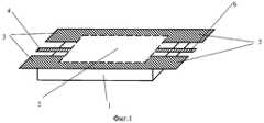 Выступающая за пределы кристалла металлизация копланарных линий передачи выполняет несколько функций. Во-первых, она служит для механического закрепления кристалла МИС на входе и выходе схемы к линиям передачи, подведенным к кристаллу при монтаже (кристалл при закреплении оказывается установленным в пространстве в виде мостика, висящего в воздухе между линиями). Во-вторых, самая важная ее функция заключается в том, что за счет электрического соединения всех элементов металлизации копланарной линии с аналогичными элементами линий, установленных на входе и выходе, параметры схемы будут соответствовать параметрам не смонтированной схемы.The metallization of the coplanar transmission lines extending beyond the crystal performs several functions. Firstly, it serves to mechanically fix the MIS crystal at the input and output of the circuit to the transmission lines connected to the crystal during installation (the crystal, when fixed, is installed in space in the form of a bridge hanging in the air between the lines). Secondly, its most important function is that due to the electrical connection of all metallization elements of the coplanar line with similar line elements installed at the input and output, the parameters of the circuit will correspond to the parameters of the unmounted circuit.