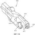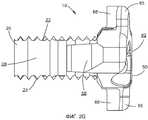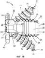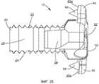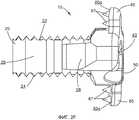 Во время операции вертушку 310'" скрепляют с пластиной 250" посредством вставки пружинных пальцев 315"' в безрезьбовое отверстие 263"' до тех пор, пока вертушка 310'" не защелкнется в отверстии 263"', в результате чего вертушка 310" удерживается внутри него. По мере продвижения пружинных пальцев 315"' в отверстии 263"' пружинные пальцы 315"' сжимаются, когда скошенные фланцы 318"' проходят мимо первого уклона 263а"' и поверх первой ступеньки 263b"', а затем пружинные пальцы 315"' и фланцы 318"' частично отпружинивают наружу, закрепляя вертушку 310"' относительно пластины 250"'. Таким образом, обратное выдвижение вертушки 310"' из отверстия 263" предотвращается посредством взаимодействия между фланцами 318"' и первой ступенькой 263b"'. Кроме того, по мере перемещения вертушки 310"' из первого положения во второе положение пружинные пальцы 315"' продвигаются дальше в отверстие 263"', в котором фланец 318"' направляется предпочтительно имеющим винтовую форму вторым уклоном 263"' до тех пор, пока фланец 318"' не пройдет по второй ступеньке 263d"'. Пружинные пальцы 315"' и фланцы 318"' отгибаются наружу, в не отклоненное положение, блокируя выдвижение вертушки 310"' назад через отверстие 263"' посредством взаимодействия между фланцами 318"' и второй ступенькой 263d"'.During operation, the