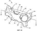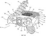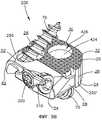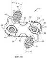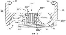 Во время операции вертушку 310" скрепляют с пластиной 250" посредством вставки пружинных пальцев 315" в отверстие 263" до тех пор, пока вертушка 310" не защелкнется в гнезде 263", после чего вертушка 310" удерживается внутри отверстия. То есть по мере введения пружинных пальцев 315" в отверстие 263" скошенные фланцы 318", выполненные на дистальном конце 316" вертушки 310", и пружинные пальцы 315" сжимаются таким образом, что пальцы 315" проходят сквозь используемый по усмотрению удерживающий фиксатор 340", после чего пружинные пальцы 315" частично отпружинивают наружу. Удерживающий зажим 340" может дополнительно слегка отгибаться наружу при прохождении сквозь фланца 318", после чего удерживающий зажим 340" отпружинивает в исходное положение. По мере того как пружинные пальцы 315" продолжают продвигаться в отверстие 263", пальцы 315" проходят поверх ступеньки 263b", а затем отгибаются наружу, в не отклоненное состояние, примыкая к уклону 263а". Таким образом, обратное выдвижение вертушки 310" из гнезда 263" предотвращается посредством взаимодействия между фланцами 318" и ступенькой 263b".During the operation, the