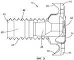 Отверстия 40 для фиксации костей предпочтительно включают в себя криволинейную или в форме усеченной сферы поверхности для контакта с нижней стороной в общем случае гладкой или имеющей форму усеченной сферы поверхностью головки 74 элемента 70 фиксации костей, так что элементы 70 фиксации костей могут полиаксиально поворачиваться относительно пластины 50-250, и для элементов 70 фиксации костей может быть выбрано множество вариантов углов траектории в соответствии с предпочтениями или потребностями хирурга, а также с обеспечением возможности оседания имплантата 10-200 во время заживления.The bone fixation holes 40 preferably include a curved or truncated sphere surface for contacting the lower side with a generally smooth or truncated sphere surface of the