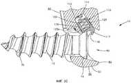 По мере введения элементов 70 фиксации костей через отверстия 40 для фиксации костей нижняя сторона головки 74 элементов 70 фиксации костей контактирует с первым концом 118, а предпочтительно с сужающимся концевым участком 117, защелкивающихся элементов 116, выступающих в отверстия 40 для фиксации костей, побуждая тем самым защелки 116 отскакивать назад, нажимая на пружину 114, и отводя защелкивающиеся элементы 116 из отверстий 40 для фиксации костей, чтобы можно было имплантировать элементы 70 фиксации костей. Как только головки 74 элементов 70 фиксации костей проходят мимо сужающихся концевых участков 117 защелкивающихся элементов 116, пружина 114 выталкивает защелкивающиеся элементы 116 обратно, в исходное положение, в котором они выступают, по меньшей мере, частично, в отверстия 40 для фиксации костей. В этом положении первый конец 118 защелкивающегося элемента 116 должен закрыть, по меньшей мере, участок головки 74 элемента 70 фиксации костей, контактировать и/или взаимодействовать с ее верхней поверхностью, чтобы заблокировать головки 74 элементов 70 фиксации костей и ограничить возможность вывинчивания элементов 70 фиксации костей из отверстий 40 для фиксации костей. В частности, первый конец 118 защелки 110 предпочтительно входит в отверстие 40 для фиксации костей таким образом, что головка 74 элемента 70 фиксации костей не может выдвинуться из отверстия 40 для фиксации костей, не столкнувшись с первым концом 118.As the