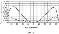 Фиг.2 изображает диаграмму, показывающую коэффициент пропускания фильтрующего слоя изобретения, в зависимости от угла излучения и длины волны света, излучаемого посредством LED кристалла;Figure 2 is a diagram showing the transmittance of the filter layer of the invention, depending on the angle of radiation and the wavelength of the light emitted by the LED crystal;