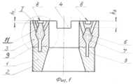 - выходная часть втулок на разных секторах расположена на разном расстоянии от торца матрицы.- the output part of the bushings on different sectors is located at different distances from the end of the matrix.