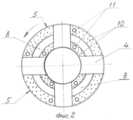 - выходные торцы втулок расположены в передней по ходу вращения части торца выступов между соосными канавками;- the output ends of the bushings are located in the front along the rotation part of the end face of the protrusions between the coaxial grooves;