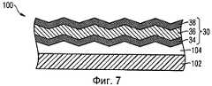 Фиг.7 иллюстрирует вариант осуществления изобретения, при котором просвечивающий защитный элемент 100 содержит предлагаемый тонкопленочный элемент в сочетании с тисненой голографической структурой.7 illustrates an embodiment of the invention in which the