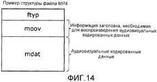 Фиг. 14 - схема, показывающая пример структуры файла MP4 в соответствии с Вариантом 4 осуществления настоящего изобретения.FIG. 14 is a diagram showing an example structure of an MP4 file according to