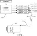 Например, на фиг.5 показана модулированная по частоте фазированная группа лазеров. Так, создан задающий генератор колебаний, который может быть модулированным по частоте, напрямую или не напрямую, который затем используют в лазерах с внешней синхронизацией или усилителях для создания составного пучка более высокой мощности, чем может достигать любой индивидуальный лазер. Таким образом, созданы лазеры 5001, 5002, 5003 и 5004, которые имеют одинаковую длину волны. Лазерные пучки объединяются устройством 5005 сведения лучей и передаются по оптоволоконному кабелю 5006. Лазеры 5001, 5002, 5003 и 5004 связаны с задающим генератором 5008 колебаний с частотной модуляцией. Объединенный пучок со своим спектром, показан позицией 5007, где δ является уходом частоты частотной модуляции. Такие лазеры описаны в патенте США № 5694408, полностью включенном в данный документ в виде ссылки.For example, FIG. 5 shows a frequency modulated phased array of lasers. So, a master oscillator was created, which can be modulated in frequency, directly or indirectly, which is then used in lasers with external synchronization or amplifiers to create a composite beam of higher power than any individual laser can achieve. Thus,