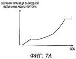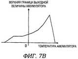 Фиг.7А - показывает зависимость между SOC и верхним пределом выходной величины аккумуляторной батареи, а Фиг.7В - показывает зависимость между температурой аккумуляторной батареи и верхним пределом выходной величины аккумуляторной батареи.Figa shows the relationship between the SOC and the upper limit of the output value of the battery, and Figv shows the relationship between the temperature of the battery and the upper limit of the output value of the battery.