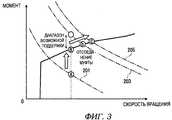 Далее со ссылками на Фиг.3 и Фиг.4 будет описано управление, исполняемое блоком управления ECU 123 при отсоединении муфты 117 в соответствии с повышением требуемой выходной величины (выходной мощности). Двигатель внутреннего сгорания 111 работает на рабочей точке А, показанной на Фиг.3, когда требуемая выходная величина при подсоединенной муфте 117 равна выходной величине, показанной линией из чередующихся длинных и коротких пунктиров, обозначенной ссылочной цифрой 201. В это время электродвигатель 119 не приводится в движение. Когда требуемая выходная величина превышает величину, требуемую в этом состоянии, например, из-за действий водителя с педалью акселератора, то блок управления ECU 123 управляет двигателем внутреннего сохранения 111 так, что повышается механический момент при одновременном сохранении скорости вращения. В этом случае рабочая точка двигателя внутреннего сгорания 111 сдвигается вверх от рабочей точки А, показанной на Фиг.3. Заметим, что верхняя граница рабочей точки двигателя внутреннего сгорания 111 задается на нижней линии BSFC.Next, with reference to FIGS. 3 and 4, the control executed by the