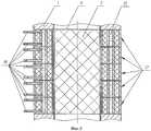 Как показано на фиг.1, диагностический контейнер состоит из корпуса 1, на который сверху установлена крышка 2. Внутри корпуса 1 расположена центральная полость 3. Корпус 1 снабжен трубами 4 для отвода и подвода воды 5 из бассейна выдержки. Средняя часть корпуса 1 выполнена многослойной. Внутрь корпуса 1 установлена диагностируемая ОТВС 6, средняя часть которой является активной зоной 7. Корпус 1 стоит на дне 8 бассейна выдержки.As shown in FIG. 1, the diagnostic container consists of a
