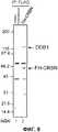 [Фиг.8] На фиг.8 оказана способность DDB1 связываться с CRBN. Экстракты из линии клеток 293Т, устойчиво экспрессирующих FH-CRBN, или контрольных клеток (псевдотрансфецированных клеток) осаждали методом иммунопреципитации антителом против FLAG, анализировали методом SDS-PAGE и окрашивали серебром. В результате выполненного эксперимента были осаждены DDB1 и CRBN. DDB1 был осажден вместе с CRBN.[Fig. 8] Fig. 8 shows the ability of DDB1 to bind to CRBN. Extracts from the 293T cell line stably expressing FH-CRBN or control cells (pseudotransfected cells) were precipitated by immunoprecipitation with anti-FLAG antibody, analyzed by SDS-PAGE and stained with silver. As a result of the experiment, DDB1 and CRBN were precipitated. DDB1 was precipitated with CRBN.