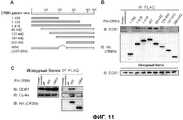 [Фиг.11] На фиг.11 показана взаимосвязь между мутантами CRBN с делецией и образованием комплекса убихитина. (А) Схематическое изображение CRBN и его мутанта с делецией. (В) FH-CRBN (дикого типа) и его мутанты экспрессировали в клетках 293Т и осаждали методом иммунопреципитации антителом против FLAG. CRBN и его мутант и связанный с ними эндогенный DDB1 обнаруживали методом вестерн-блоттинга. В результате выполненного экперимента было установлено, что делеция аминокислот от положения 187 до положения 260 CRBN (ΔMid) аннулировала взаимодействие с DDB1. (С) CRBN и ΔMid, мутант с отсутствием аминокислот от положения 187 до положения 260, экспрессировали в клетках 293Т. После иммунопреципитации антителом против FLAG белки DDB1 и Cul4A, связанные с CRBN или ΔMid, анализировали методом вестерн-блоттинга. ΔMid был неспособен образовывать комплекс с DDB1 и Cul4a.[Fig. 11] Fig. 11 shows the relationship between CRBN mutants with deletion and the formation of a ubiquitin complex. (A) Schematic representation of CRBN and its deletion mutant. (B) FH-CRBN (wild type) and its mutants were expressed in 293T cells and precipitated by immunoprecipitation with anti-FLAG antibody. CRBN and its mutant and associated endogenous DDB1 were detected by Western blotting. As a result of the experiment, it was found that a deletion of amino acids from position 187 to position 260 of CRBN (ΔMid) invalidated the interaction with DDB1. (C) CRBN and ΔMid, an amino acid-free mutant from position 187 to