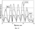 Способ реализуют следующим образом. Выходной сигнал B(t) сравнивают с тестовым А(t) на временных участках малосигнального режима работы исследуемого устройства 10 (фиг. 2). На основе этого сравнения получают коэффициент пропорциональности КПР и коэффициент фазовой коррекции Δφ, в результате чего получают прогнозируемый выходной сигнал А*(t) (фиг. 3):The method is implemented as follows. The output signal B (t) is compared with the test A (t) in the temporary sections of the low-signal operating mode of the investigated device 10 (Fig. 2). Based on this comparison, a proportionality coefficient KPR and a phase correction coefficient Δφ are obtained, resulting in a predicted output signal A* (t) (Fig. 3):