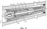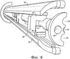 Фиг.6 - вид в перспективе со стороны выходного конца по второму примеру, представленный со снятым наружным корпусом, чтобы показать зажимной механизм; и6 is a perspective view from the side of the output end according to the second example, presented with the outer housing removed to show the clamping mechanism; and
