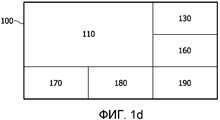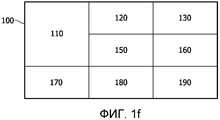 Фиг.la-1i иллюстрируют примерное компьютерное экранное изображение на дисплее 100. Специалисты в данной области техники поймут, что экранное изображение 100 может быть показано на любом типе экрана (например, LCD, CRT, проекционном и т.д.) и что отображаемые на нем изображения могут быть сформированы посредством системы любого типа, выполненной с возможностью функционирования GUI, как описано в этом документе. Кроме того, специалисты в данной области техники поймут, что экранное изображение 100 может включать в себя полностью видимую область монитора или может включать в себя ее подмножество. Фиг.la-1i иллюстрируют экранное изображение 100, которое подразделяется на девять просмотровых областей, содержащих окна 110, 120, 130, 140, 150, 160, 170, 180 и 190. Каждая из просмотровых областей является прямоугольной и имеет размерности, соответствующие размерностям окон 110-190. Однако экранное изображение 100 может содержать любое количество просмотровых областей любой формы и/или размера. Размер каждого окна 110-190 может быть изменен так, чтобы полностью закрыть подмножество соответствующей просмотровой области окна, при том что каждая просмотровая область имеет фиксированный размер. Фиг.la показывает иллюстративную заданную по умолчанию настройку экранного изображения 100, при этом каждое из окон 110-190 имеет равный размер.Fig. La-1i illustrate an exemplary computer screen image on the