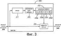 Фиг.3 представляет собой функциональную блок-схему второго варианта осуществления электронного адаптера 300 для селективной модификации информационного аудио- или видеосигнала для использования с выходным устройством. Вариант осуществления, показанный на фиг.3, в общих чертах схож с вариантом, проиллюстрированным на фиг.2, но вместо устройства 210 автоматического распознавания, в данном случае, электронный адаптер 300 имеет сенсор 311 для определения аспекта или характеристики условий эксплуатации. Блок 325 логической выборки здесь выбирает один из множества хранимых профилей 310a…310d на основании сигнала поступающего из сенсора 311.FIG. 3 is a functional block diagram of a second embodiment of an