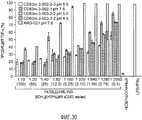 На Фигуре 29 показаны различия в способности hCD83ext дикого типа (полученного при pH 4,5 или 5,5), или мутантных форм hCD83ext-m3 (полученных при pH 5,5) и hCD83ext-m5, двух препаратов (полученных при pH 7,6) ингибировать продукцию TNFα стимулированными LPS/IFNγ PBMC приматов, измеренную либо посредством процентного содержания моноцитов, продуцирующих TNFα, либо посредством среднего количества продуцированного TNFα на клетку (MFU).Figure 29 shows the differences in the ability of wild-type hCD83ext (obtained at pH 4.5 or 5.5), or mutant forms of hCD83ext-m3 (obtained at pH 5.5) and hCD83ext-m5, two formulations (obtained at