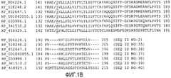На Фигуре 1 представлено выравнивание последовательности белка, полученное при использовании MUSCLE версия 3.6, используемые параметры: - maxitiers 2 (см. Edgar RC (2004) Nucleic Acids Res 32(5):1792-7). NP_00424.1 (SEQ ID NO:2) представляет собой CD83 белок человека (SEQ ID NO:2). XP_518248.2 представляет собой CD83 белок шимпанзе (SEQ ID NO:35). XP_852647.1 представляет собой CD83 белок собаки (SEQ ID NO:37. NP_001040055.1 представляет собой CD83 быка (SEQ ID NO:37). NP_033986.1 представляет собой CD83 мыши (SEQ ID NO:38). XP_341510.2 представляет собой CD83 крысы (SEQ ID NO:39). XP_41829.1 представляет собой CD83 красной дикой курицы (SEQ ID NO:40). Подчеркнутые аминокислотные остатки могут быть замещены любой аминокислотой. Подчеркнутые и выделенные жирным шрифтом аминокислоты предпочтительно могут быть замещены посредством консервативной аминокислотной замены. Аминокислотные остатки, которые не подчеркнуты, предпочтительно не замещены.The Figure 1 shows the protein sequence alignment obtained using MUSCLE version 3.6, the parameters used are: - maxitiers 2 (see Edgar RC (2004) Nucleic Acids Res 32 (5): 1792-7). NP_00424.1 (SEQ ID NO: 2) is a human CD83 protein (SEQ ID NO: 2). XP_518248.2 is a CD83 chimpanzee protein (SEQ ID NO: 35). XP_852647.1 is a dog CD83 protein (SEQ ID NO: 37. NP_001040055.1 is a bull CD83 (SEQ ID NO: 37). NP_033986.1 is a mouse CD83 (SEQ ID NO: 38). XP_341510.2 is a Rat CD83 (SEQ ID NO: 39). XP_41829.1 is CD83 of red wild chicken (SEQ ID NO: 40). Underlined amino acid residues may be substituted with any amino acid. Amino acids underlined and in bold may be substituted by conservative amino acid substitution Amino acid residues that are not underlined are preferably not substituted.