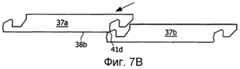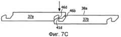 b: точка контакта между панелью 37а пола и панелью 37b пола, в которой направленный вверх шип 41 подвергается деформации, чтобы позволить направленному вниз шипу 46 войти в направленный вверх паз 43;b: the point of contact between the