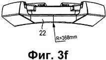 Две части 4, 8 корпуса в целом выполнены в форме диска, то есть их ширина В в горизонтальном направлении и высота Н в вертикальном направлении меньше глубины Т в горизонтальном направлении, перпендикулярном ширине. Благодаря этому возможно выполнение устройства 2 в целом по форме и по размерам таким, что его удобно носить на теле пользователя. Согласно изобретению устройство 2 выполнено так, что расположенные рядом друг с другом части 4, 8 корпуса могут быть наложены на тело таким образом, что вторая часть 8 корпуса обращена к телу, то есть находится между телом и первой частью 4 корпуса, а первая часть 4 корпуса обращена наружу от тела, то есть по существу образует видимую часть устройства 2. При этом обращенная к телу пользователя сторона 22 второй части 8 корпуса выполнена закругленной. Как видно на фиг.1с, 1d, 3f, 3е, обращенная к телу сторона 22 на виде в сечении горизонтальной плоскостью выполнена вогнутой. В показанном примере выполнения она имеет участок с радиусом R кривизны, равным, например, 368 мм (фиг.1 с, 3f). Дополнительно обращенная к телу сторона 22 на виде в сечении вертикальной плоскостью также выполнена вогнутой и имеет радиус R кривизны, равный, например, 750 мм (фиг.1d). За счет этого устройство 2 можно эргономично расположить и носить на бедренной области пользователя.The two